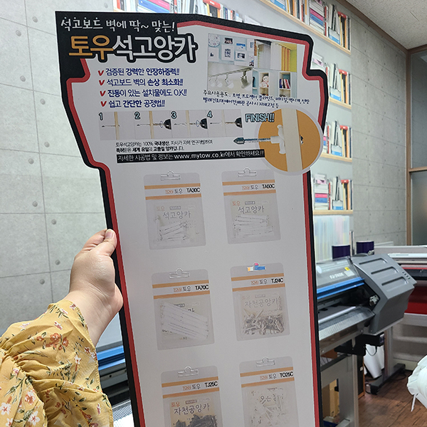 가볍고 단단한 PVC 보드 소재로 형태가 안정적인 인쇄물입니다.