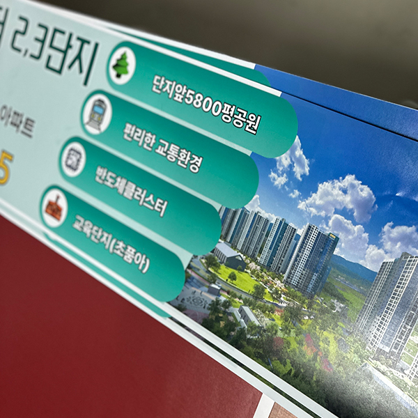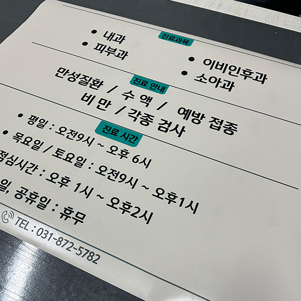 흰색 바탕의 기본 시트지로 색 표현이 선명한 것이 특징입니다.유리, 벽면, 판넬 등 다양한 면에 부착할 수 있습니다.접착력이 좋아 장기간 부착에도 안정적입니다.가장 활용도가 높은 인쇄물로 홍보용, 안내용 모두 적합합니다.