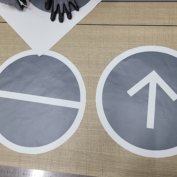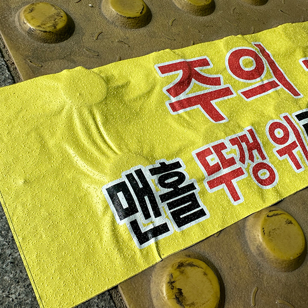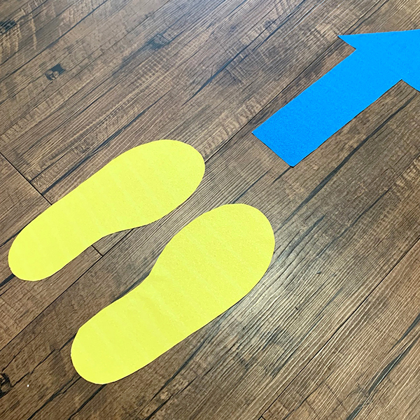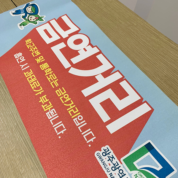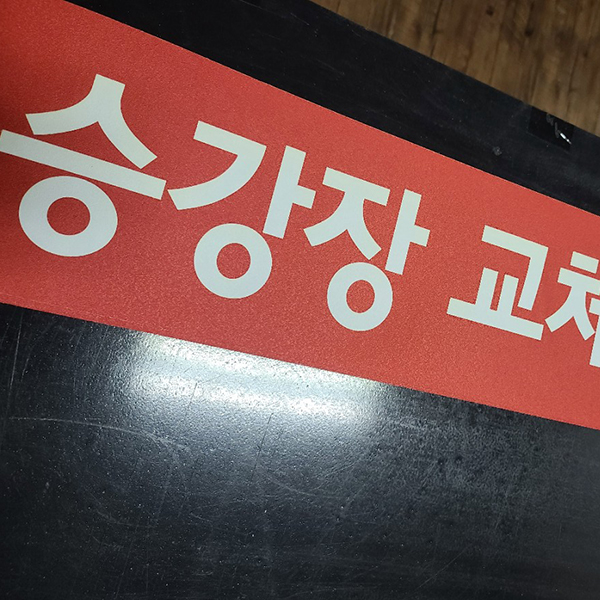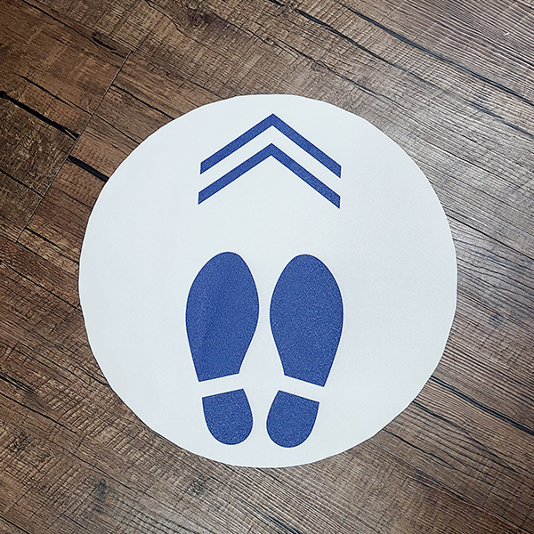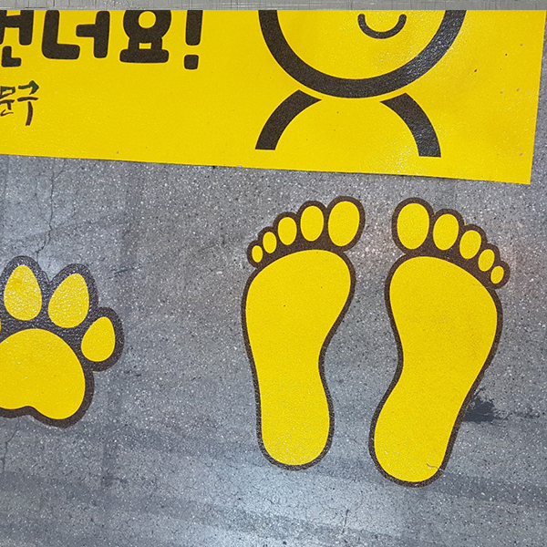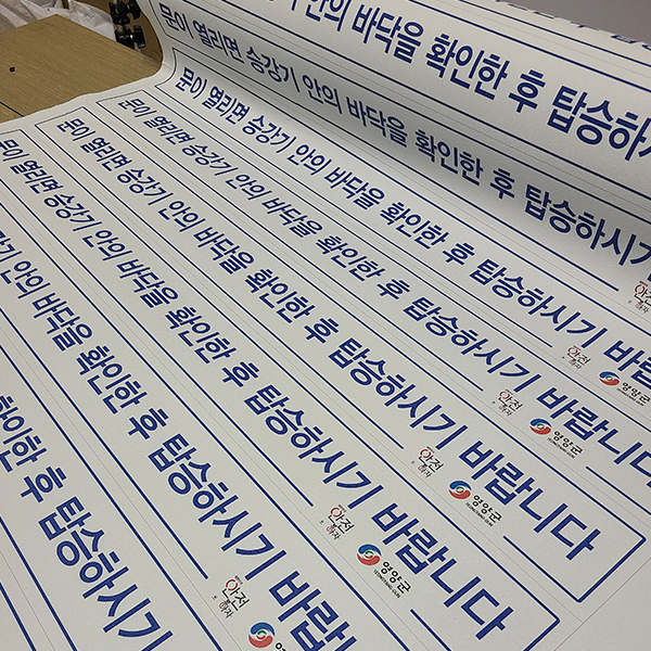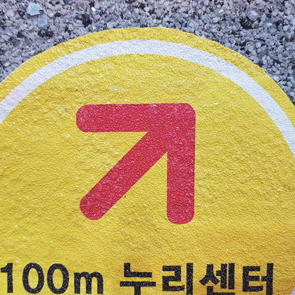 바닥 전용 시트지로 거친 표면에도 잘 부착됩니다.접착력이 강해 외부 환경에서도 쉽게 떨어지지 않습니다.보행 중에도 잘 보이도록 인쇄 표현력이 우수합니다.행사장, 바닥 안내 사인에 적합합니다.