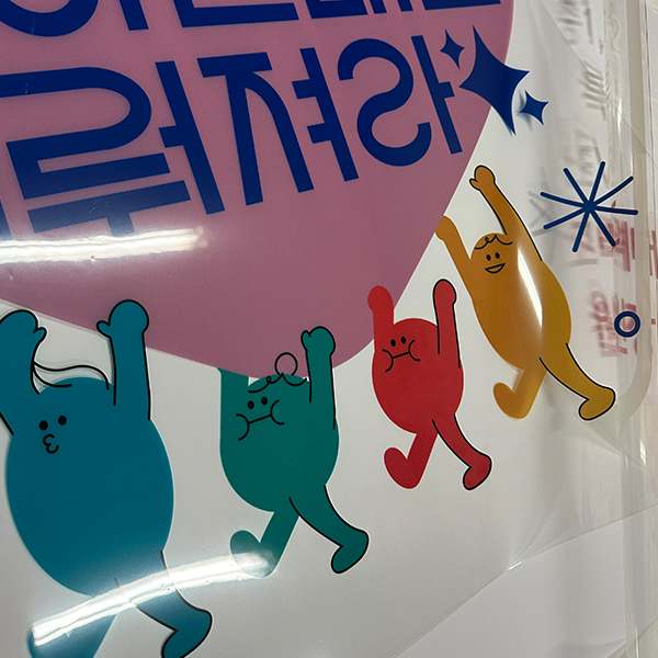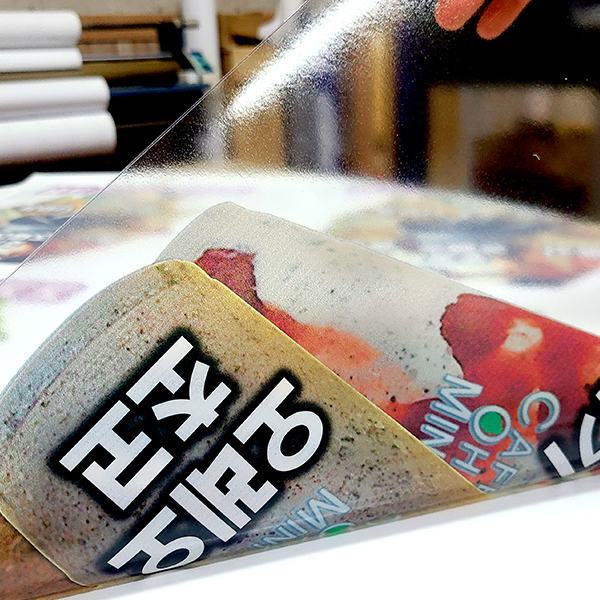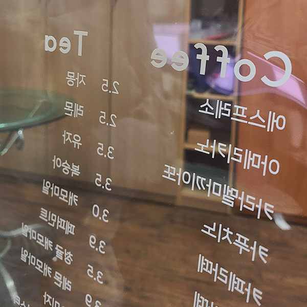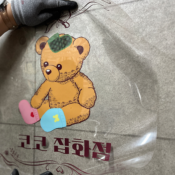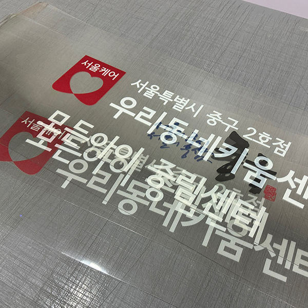 투명한 재질로 유리의 질감을 그대로 살릴 수 있습니다.배경이 비치면서도 인쇄된 디자인은 또렷하게 표현됩니다. (컬러+화이트인쇄)깔끔하고 세련된 분위기 연출이 가능합니다.매장 유리, 로고, 쇼윈도 디자인에 많이 사용됩니다.